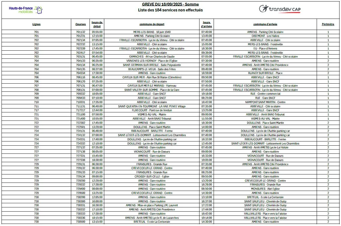 Jeudi 18 septembre : retrouvez les prévisions des transports dans la Somme et dans les Hauts-de-France